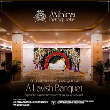 Welcome to Mihira Banquets, one of the most elegant and spacious wedding halls in Ramanthapur, Hyderabad. We provide beautifully designed banquet spaces for all your special occasions, including weddings, receptions, engagement ceremonies, birthday parties, saree ceremonies, corporate events, and more.